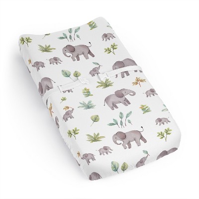Sweet Jojo Designs Gender Neutral Unisex Changing Pad Sheet Watercolor Elephants Grey Green and Blue