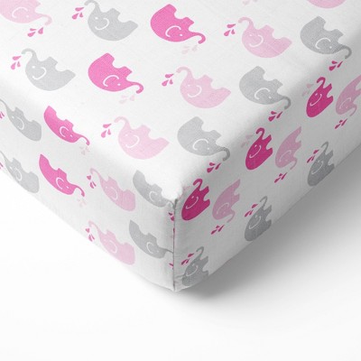 Bacati - Elephants Pink/Gray Muslin 100 percent Cotton Universal Baby US Standard Crib or Toddler Bed Fitted Sheet