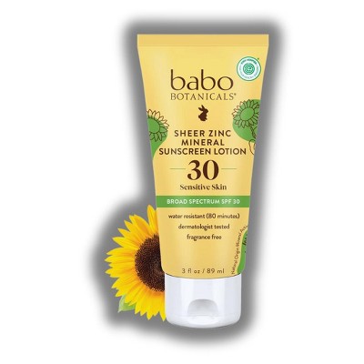Babo Botanicals Sheer Zinc Mineral Sunscreen Lotion SPF 30 | sunflower oil and shea butter to moisturize and soothe skin. - (3 oz)