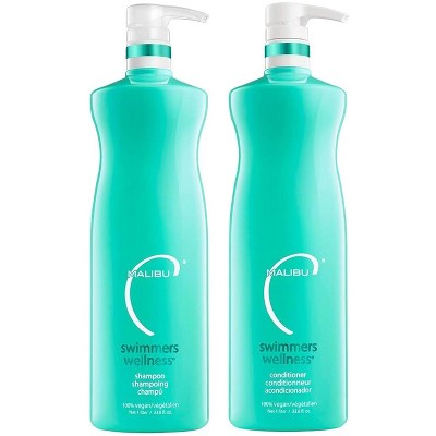 Malibu C SWIMMERS WELLNESS Shampoo & Conditioner (33.8 oz / 1 L) Duo Set, Restoring Hair Care Set for Swimmers - Protects Against Chlorine Damage Kit