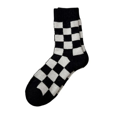 Memoi Costelle Pindot Fuzzy Cuff Cotton Blend Crew Socks