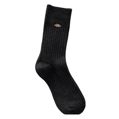Anna-Kaci Women's 3-Pair Ribbed Crew Socks Soft Stretch Knit with Subtle Embblem Detail Comfortable Everyday Sock Set - Dark Gray