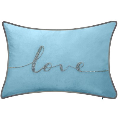 12"x18" Poly-Filled Beaded 'Love' Luxe Velvet Lumbar Throw Pillow - Edie@Home