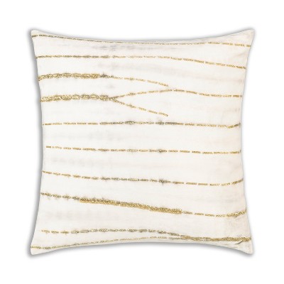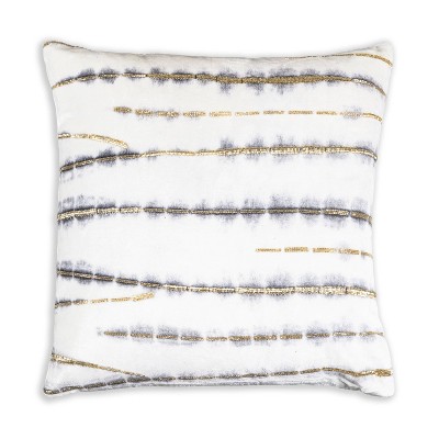 Abstract Square Pillow – 22" x 22" Forest Green and Beige Printed Polyester Accent Cushion By Cloud9