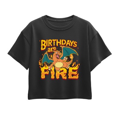 Girls' - Pokémon - Birthdays Fire Charizard Short Sleeve Boxy Graphic T-Shirt