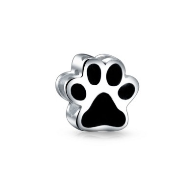 Bling Jewelry Black Paw Print Charm Bead Pet Lovers Bracelet