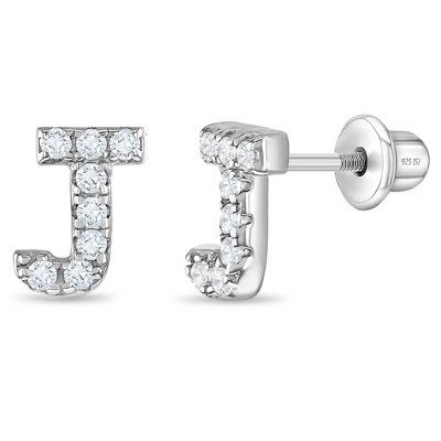 Girl's Cubic Zirconia Letter Initial Screw Back Sterling Silver Earrings - In Season Jewelry