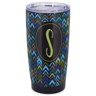 Elanze Designs L Monogram Herringbone Arrows Wrap-Around Design 20 Ounce Stainless Steel On-The-Go Coffee Mug, Thermal Travel Tumbler with Leak