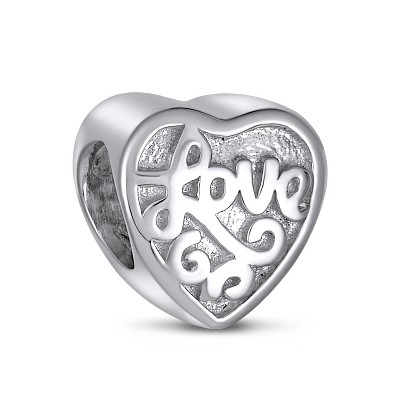 Bling Jewelry Antique Style Words Saying Love Heart Shape Charm Bead Wife Daughter Sterling Silver Fits European Charm Bracelet