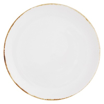 Jiallo 8.5" Simplicity Collection White Porcelain Gold Trim Freestyle Round Dessert Plate