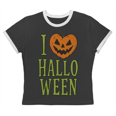 Rerun Island Women I Love Halloween Smiling Pumpkin Short Sleeve Graphic Cotton Retro Vintage Ranger Baby Tee