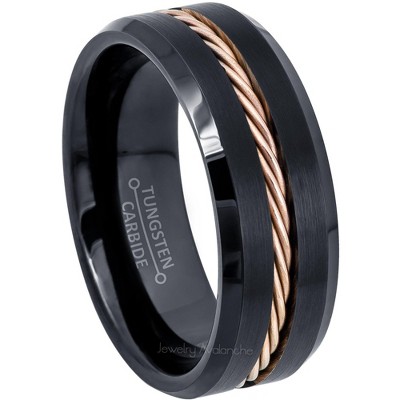 Jewelry Avalanche 8mm Pipe Cut Rose Gold & Black IP Grooved Tungsten Carbide Mens Wedding Band