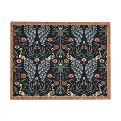 Ninola Design Watery Abstract Flowers Navy Rectangular Bamboo Tray - Deny Designs
