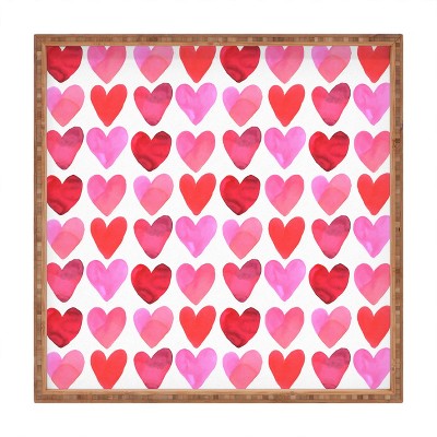 Amy Sia Heart Watercolor Square Bamboo Tray - Deny Designs