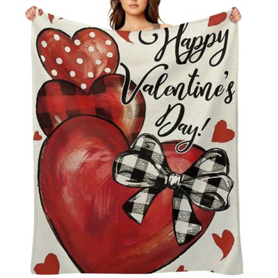 Valentine's Day Fleece Blanket Ultra Soft Anti-Pilling Textured Heart Happy Valentine's Day Print for Couch Bed 60x80 inches