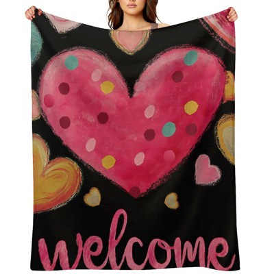 Valentine's Day Welcome Heart Throw Blanket - Ultra Soft, Anti-Pilling, Wrinkle Resistant for Couch, Bed & Gifts 50x60 inches