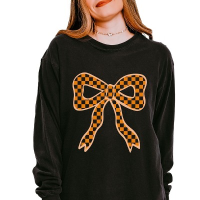 Simply Sage Market Coquette Orange Checker Bow Garment Dyed Long Sleeve