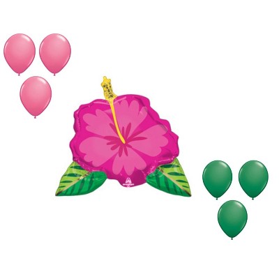 LOONBALLOON 27 Inch Beautiful Tropical Hibiscus Balloon Medium Shape Set (6x latex)