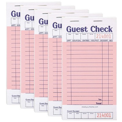 Stock Your Home Pink Guest Check Books for Servers (5 Pack)