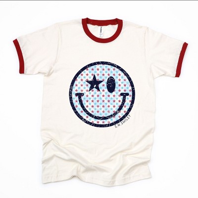Simply Sage Market S.W.Smiley Checkered Patriotic Ringer Tee