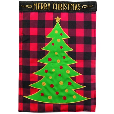 Holiday Tree Red and Green 13 X 19 Polyester Outdoor Hanging Garden Flag