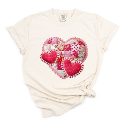 Hearts Patchwork Print - Women's Garment Dyed Graphic T-Shirt