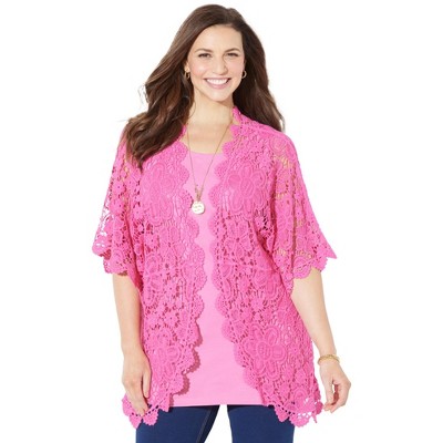 INSPIRE CHIC Women's Elegant Long Sleeve Floral Lace Panel Knit Crop Cardigan Shrug