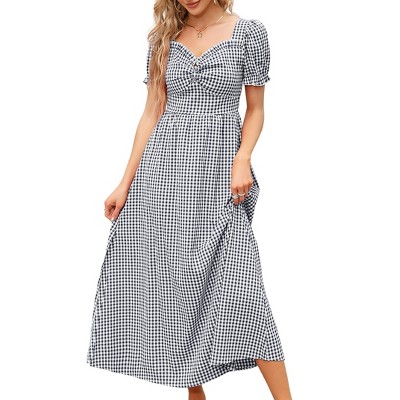 Allegra K Women's Casual V Neck A-Line Summer Short Puff Sleeves Dress