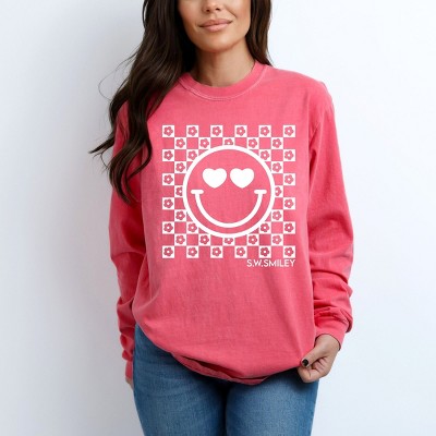 Simply Sage Market S.W.Smiley Checkered Floral Outline Garment Dyed Long Sleeve