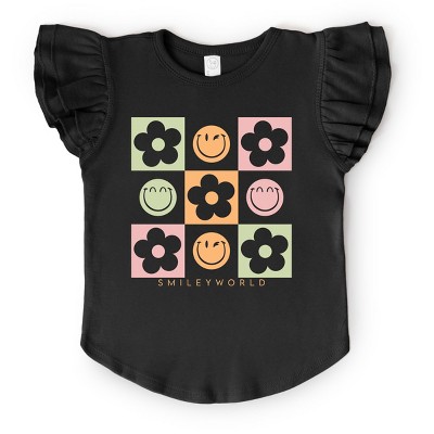 The Juniper Shop SmileyWorld Checkered Floral Smile Flutter Sleeve Tee