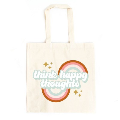 City Creek Prints Think Happy Thoughts Rainbow Canvas Tote Bag - 15x16 - Natural