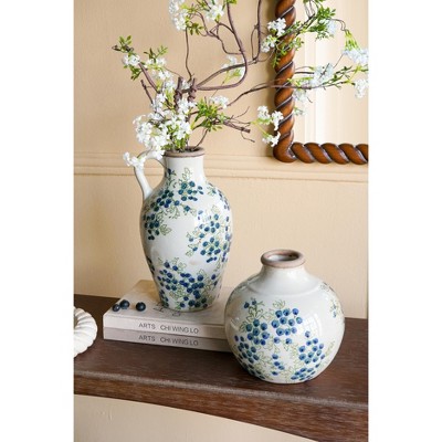 Moda Furnishings 8" White Ceramic Cube Vase with Blueberry Motif - Vintage European Style for Farmhouse, French Country Decor