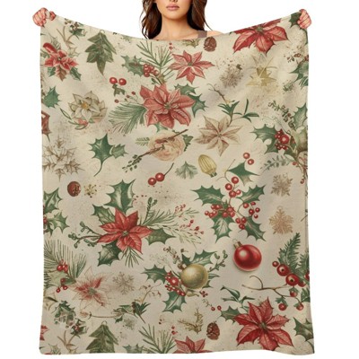 FIONECA Christmas Poinsettia Gift Box And Santa Claus Pattern Warm Fleece Blanket Holiday Decorative Cozy Throw Blanket 60x80 inches