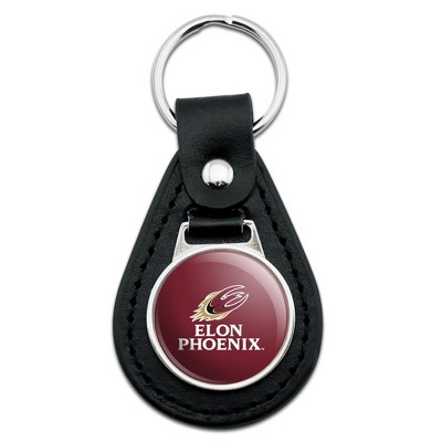 Elon University Phoenix Logo Black Leather Keychain