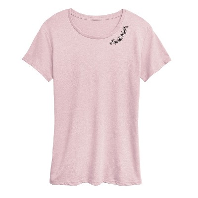 Women's - Instant Message - Sketched Florals Neck Short Sleeve Graphic T-Shirt