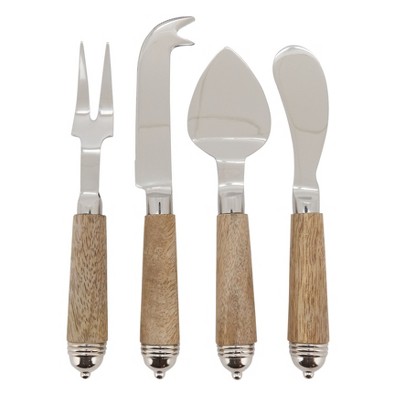 Saro Lifestyle Bark Wood Cheese Cutlery, Ecru (Set of 4)