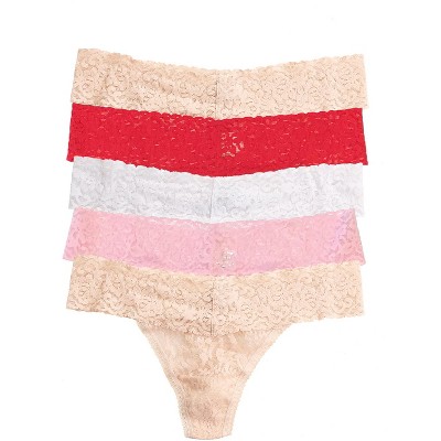 Felina Stretchy Lace Low Rise Thong - Sexy Underwear for Women, Thongs for Women, Seamless Panties for Women (5-Pack)