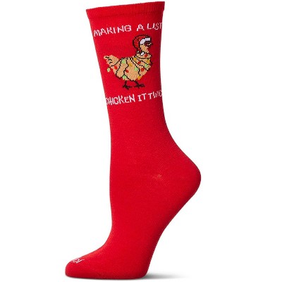 Memoi Women's "Chicken It Twice" Christmas Holiday Novelty Crew Sock Red 9-11