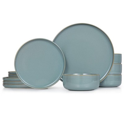 Gibson Elite Echo Bay 12 Piece Porcelain Reactive Glaze (Service for 4) Ceramic Plates and Bowls Modern Stackable Dinnerware Set