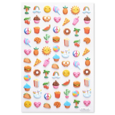 Cute Puffy Stickers Variety Pack/3D Food Treats and Fun Icons 72ct - 1 Sheet