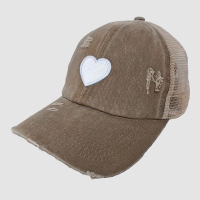 Anna-Kaci Women's Distressed Trucker Hat with Valentine Heart Patch