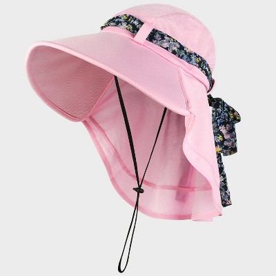 Tirrinia Women's Wide Brim Bucket Hat with Floral Scarf & Neck Flap - Foldable, Lightweight & UV Protection Sun Hats for Beach, Garden Party
