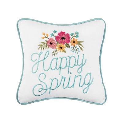 C&F Home Floral Flowers "Happy Spring" Embroidered Small/Petite Accent Pillow, 10" x 10"