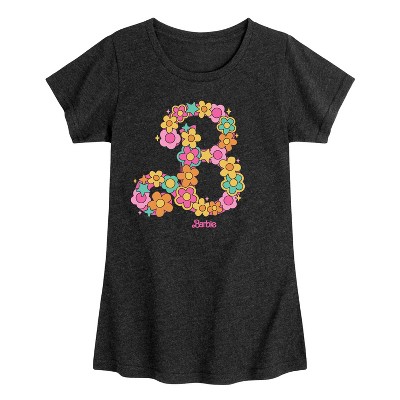 Girls' - Barbie - Barbie Flower Logo- Girls Fitted Short Sleeve Graphic T-Shirt Fitted Short Sleeve Graphic T-Shirt