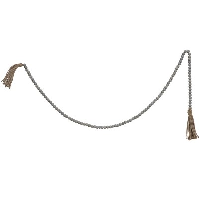 Storied Home Grey Jute & Wood Bead Garland with Tassels