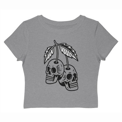 Rerun Island Women Skull Cherries Outlines Short Sleeve Graphic Cotton Baby Tee