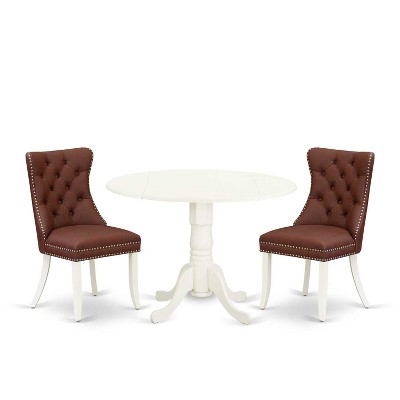 3-Piece Linen White Finish Solid Wood Top - Dining Room Set with High Back - Seats 4