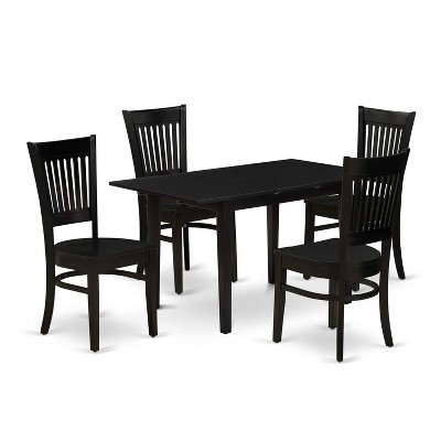 HomeStock 5-Pc Black Finish Solid Wood Top-Rectangular Upholstered Dining Room Set with Butterfly Leaf-Seats 4