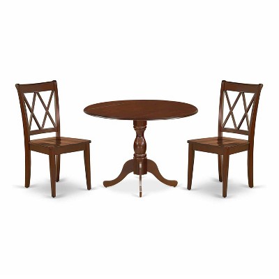 3-Piece Mahogany Finish Solid Wood Top - Dining Room Set - Seats 4