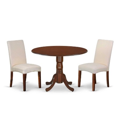 HomeStock 3-Pc Mahogany Finish Solid Wood Top-Round Dining Room Set with Dropleaf-Seats 4